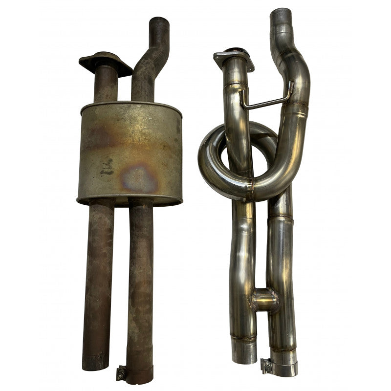 Our Trombone resonator delete kit is a game changer for the Gen 2 Raptors. Now your Gen 2 can sound like a Gen 3! Our equal length "trombone" resonator delete is a one piece construction for easy installation and made of 3" mandrel bent 304 stainless steel. We included an h-pipe in the design to balance out both driver and passenger side exhaust after the loop because the factory muffler does not have a cross over in it.